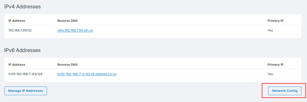 Click the Network Config button to generate and display the necessary contents of each network configuration file that you will need to update on your Linux VPS.